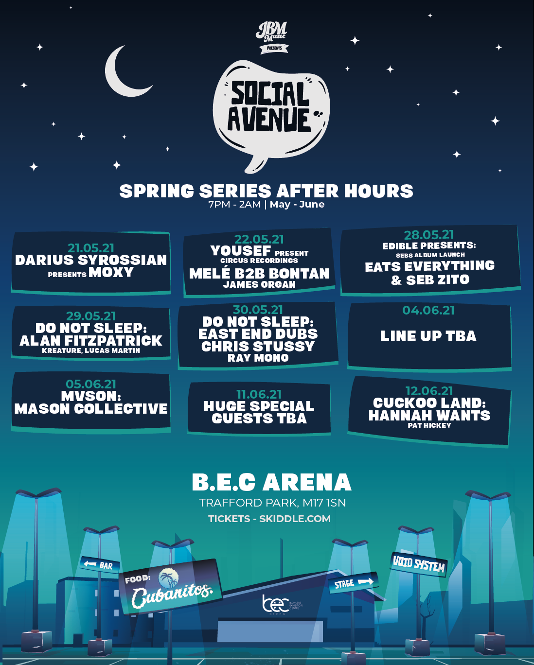 Due to the phenomenal demand for this year’s Social Avenue series, the team now announce a much anticipated spring after hours series at Manchester’s BEC Arena. Events run from May 21st and take in world beating house, tech and techno DJs such as Darius Syrossian, Eats Everything, Seb Zito, East End Dubs, Chris Stussy, Hannah Wants, MVSON, Mele B2B Bontan and Alan Fitzpatrick & Kreature. Tickets are on sale now, sign up HERE bit.ly/SocialAvenue2021